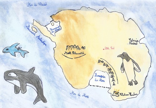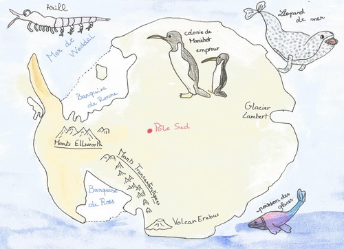 Toujours en lien avec le fichier du Vendée Globe, les élèves ont produit une carte du continent que les skippers ont dû contourner pour faire le tour du monde. Pour cela, ils ont au préalable étudié celle de l'Australie à partir de l'ouvrage "Cartes" de Aleksandra Mizielinska et Daniel Mizielinski.