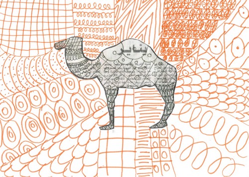 Après avoir analysé le camélidé de Robert Combas, les élèves ont produit à leur tour un dromadaire travaillé avec divers graphismes sur, sous et autour du calque.